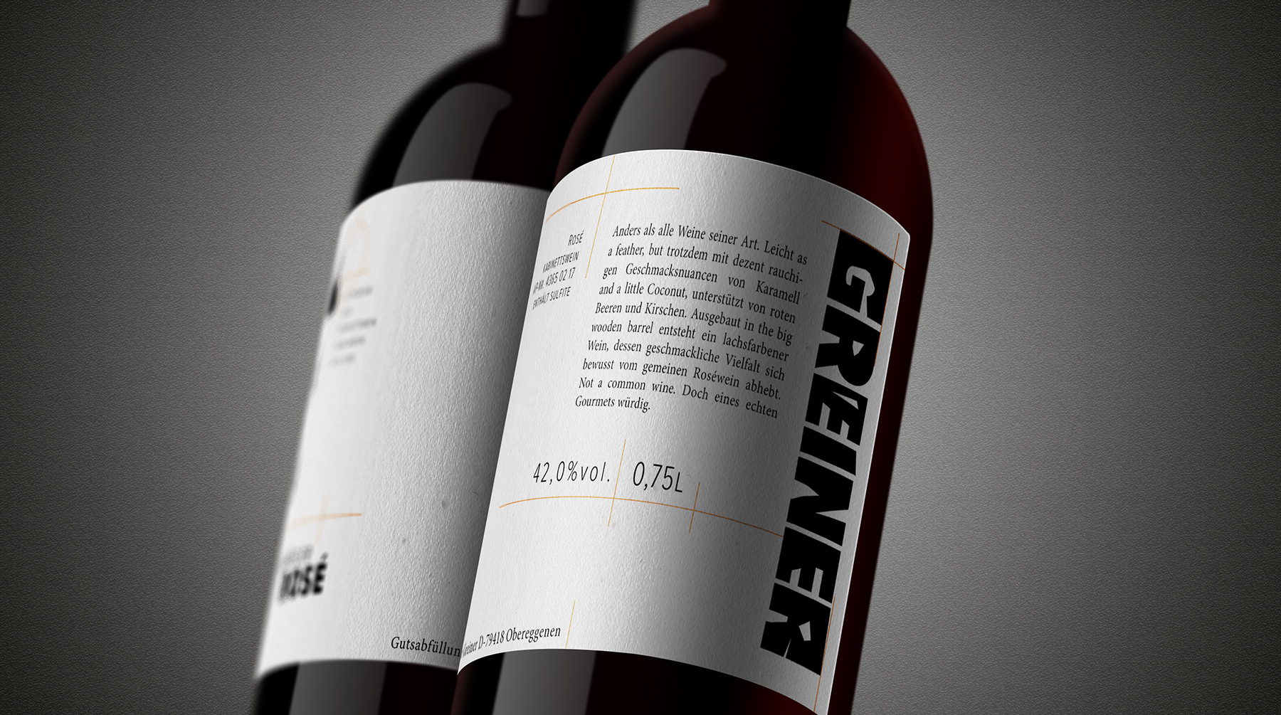 Die Gestaltung nimmt sich altdeutsche Holzschnitte zum Vorbild, eine daran angelehnte Iconwelt, Custom Type und an Hilfslinien oder Schnittmarken erinnernde Strukturelemente bilden den Kern des Designs. Die Herkunft des Weins spielt für jedes Weingut eine große Rolle. Nicht wegen des Prestiges, sondern der Qualität der Trauben. Daher sind auch die Logoicons an die Umgebung des Weingutes angelehnt: Schwarzwald und Blauengebirge.