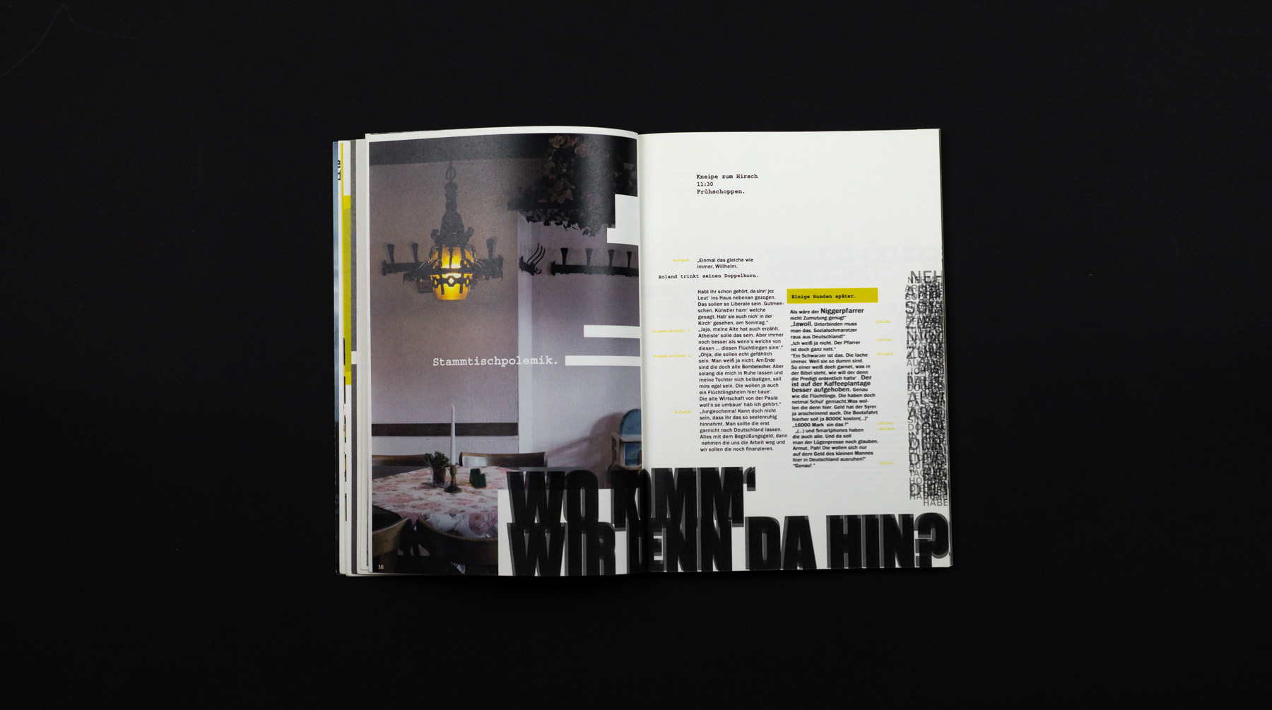 Die Arbeit „Roland Neuland“ setzt such satirisch mit der Thematik des Lokalpatriotismus auseinander. Roland, der Protagonist der Handlung um ein kleines Dorf in Nordhessen, steht für Traditionen und Dogmen und kann sich nicht mit Neuem abfinden. Ausländer, Flüchtlinge und an Wichtigkeit verlierende Traditionen bringen seine kleine persönliche Welt ins Wanken. Die Angst vor der Konfrontation mit Neuem und die Beweggründe, aus denen Menschen anfangen zu hassen, werden in diesem Printerzeugnis thematisiert.